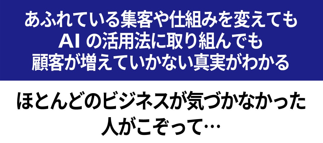 あなたが、新たな集客や仕組み…AIに振り回されることなく、集客・顧客・売上を好転させたいと思われるなら…